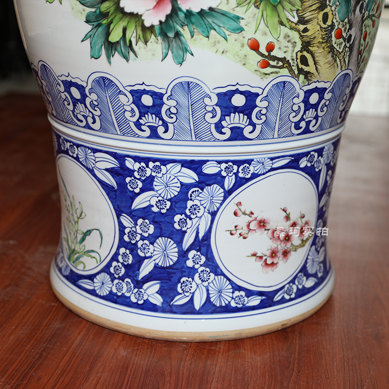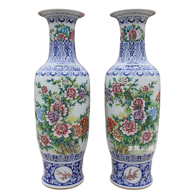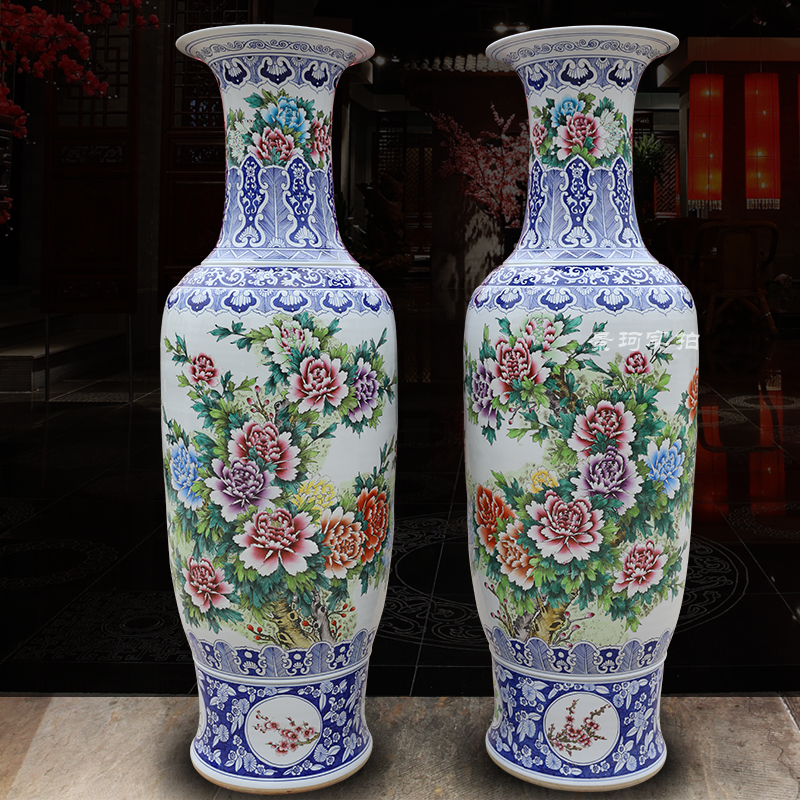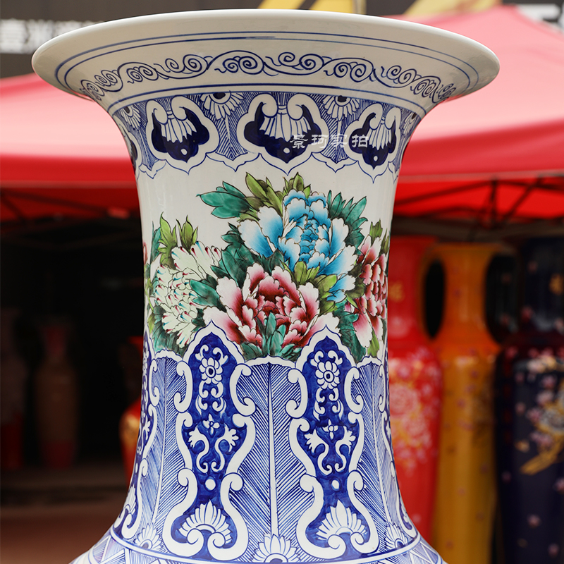 Jingdezhen ceramics hand-painted blue and white pastel peony flowers bloom rich landing large vase living room hotel ornaments