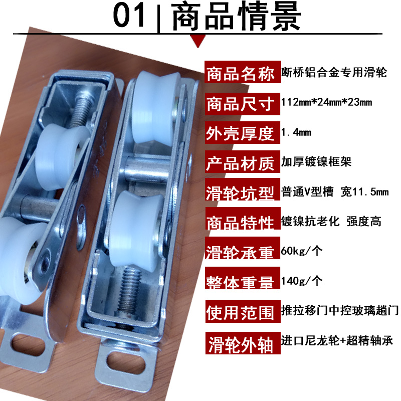 Broken bridge pulley central control glass sliding door wheel heavy-duty sliding door lower wheel nylon double wheel track bearing roller