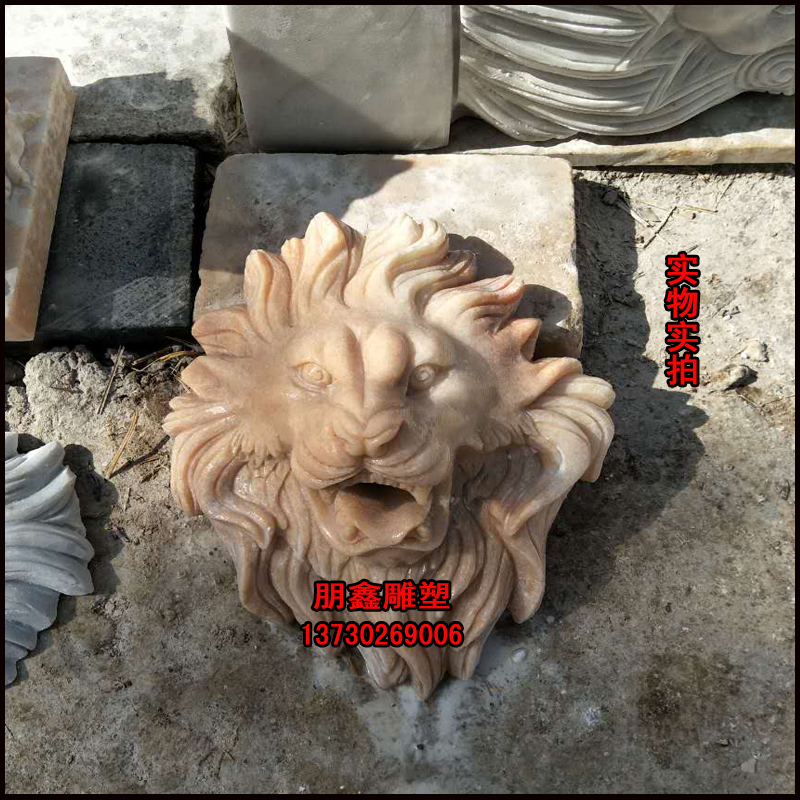 Stone carved lion head spray water Han white jade flowing water fountain tap wall basin Wash Basin Landscape Courtyard Wall Pendant
