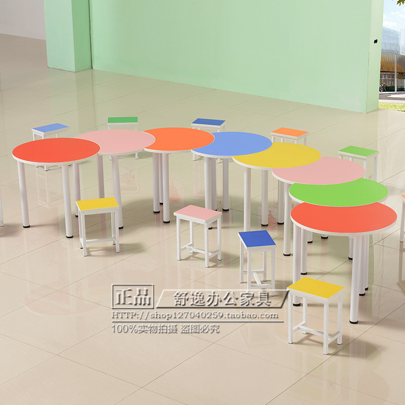 Primary and secondary school students desks and chairs color fan-shaped table and chair combination multilateral round table and chair arc training kindergarten reading table