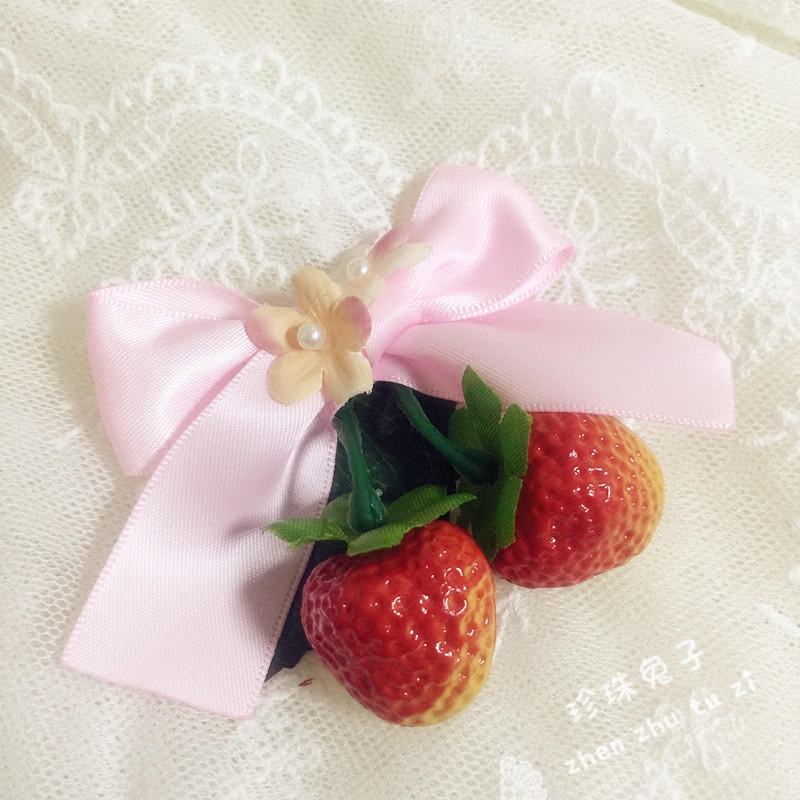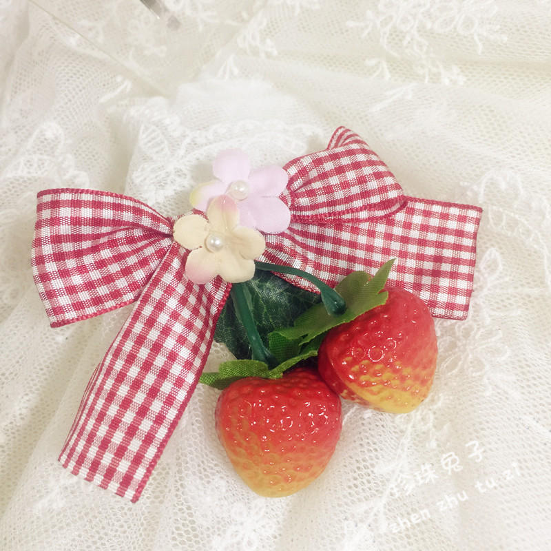 Pearl Rabbit original lolita hand-made strawberry garden Flowers Cherry edge clamped hair and hair decoration