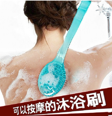Colorful plastic long handle super soft bath brush Japanese style bath wipe can be hung scrub bath ball bath scrub brush