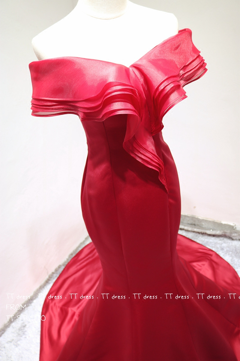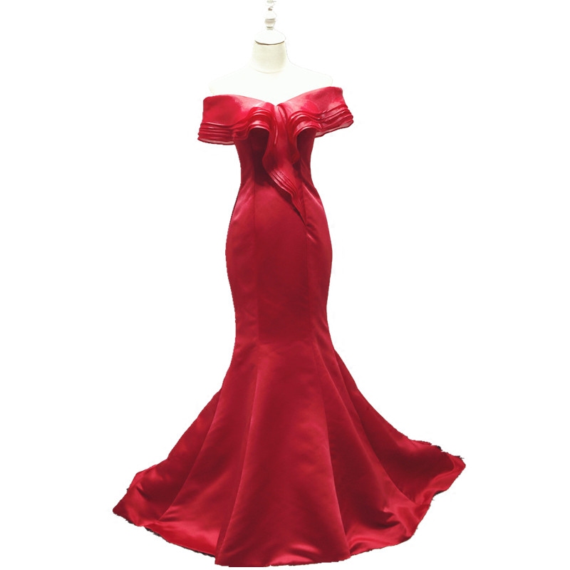 Temperament Banquet Gown for long version of the Shoulder Fish Tail Bride's Toast Fashion Annual Fashion Meeting to host trailing evening dress