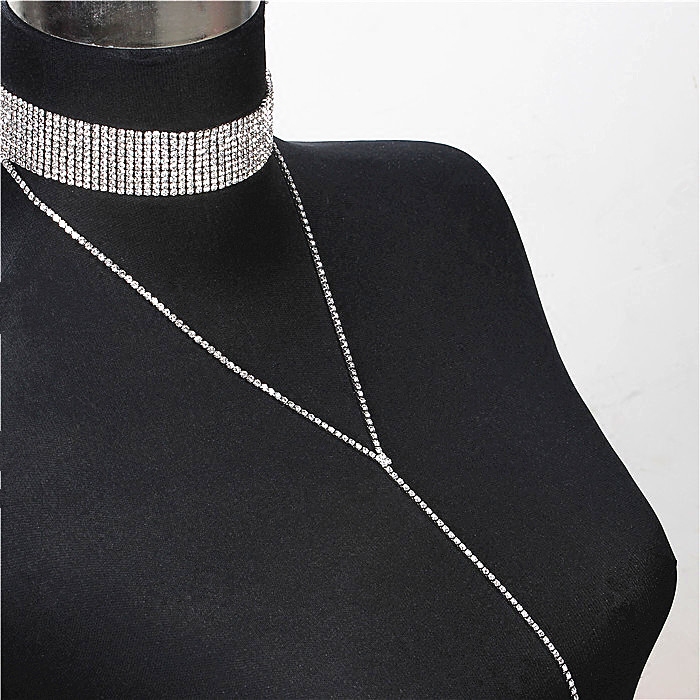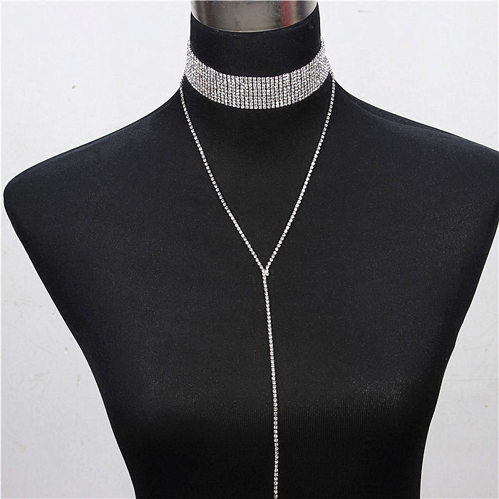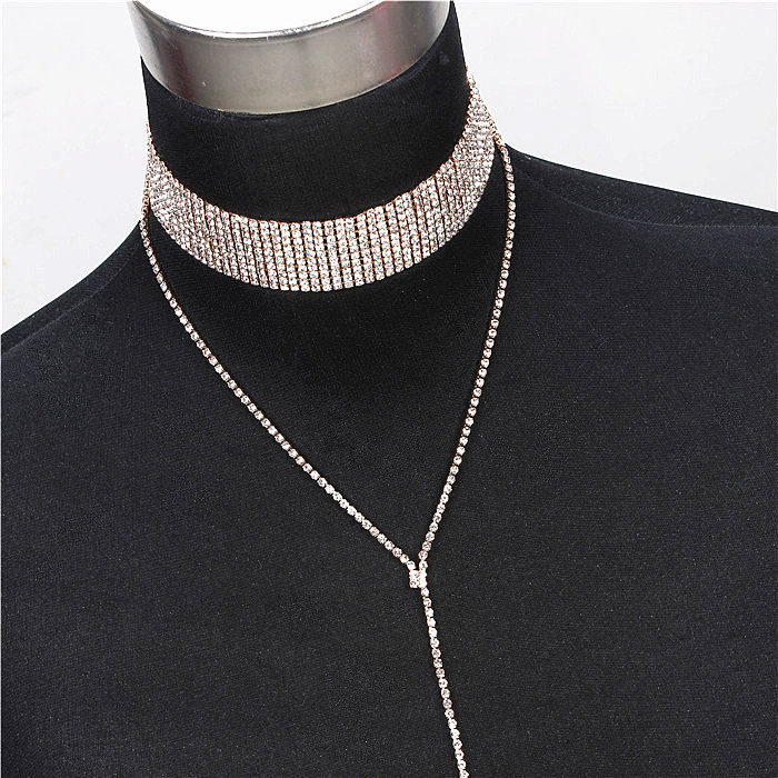 European and American big-name exquisite shiny full diamond chain wide neck chain necklace multi-drainage drill collarbone chain necklace set