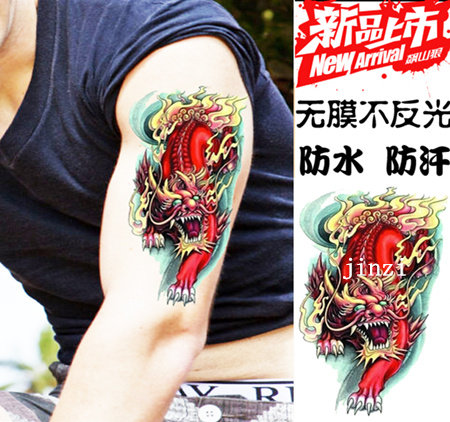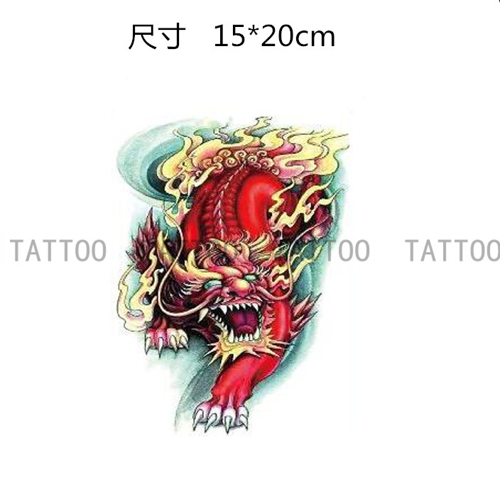 Tattoo Sticker Waterproof Male Lasting Fire Kirin Flower Arm Tattooed Green Beast Color Arm Front Chest Tattooed Stickler Tattoo