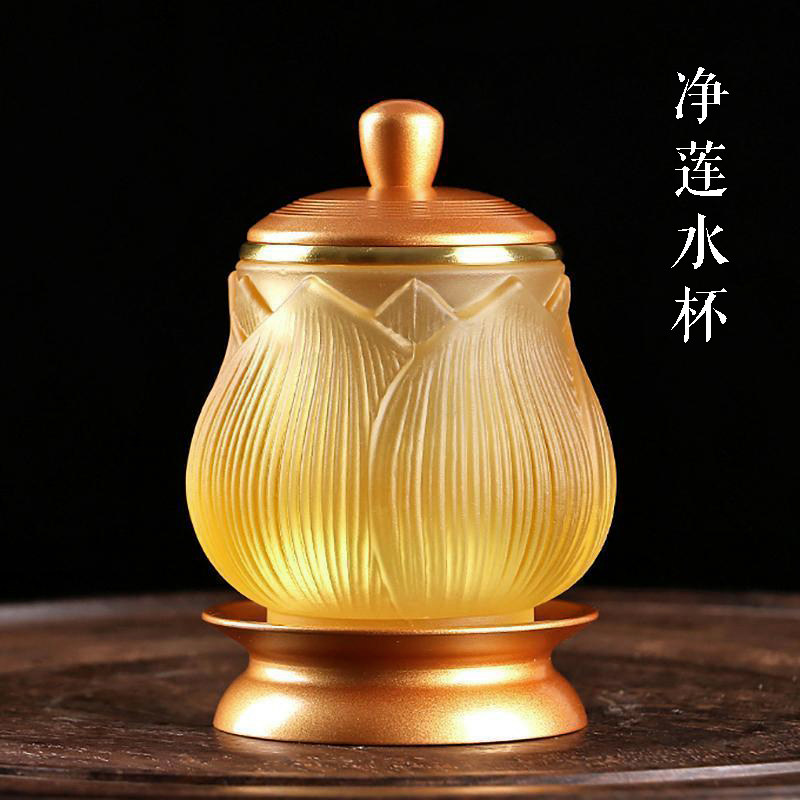 Taiwan's glazed holy water glass for cup Buddha Former Lotus Pure water glass Guanyin Tai Sado water glass for the Buddha's water glass-Taobao
