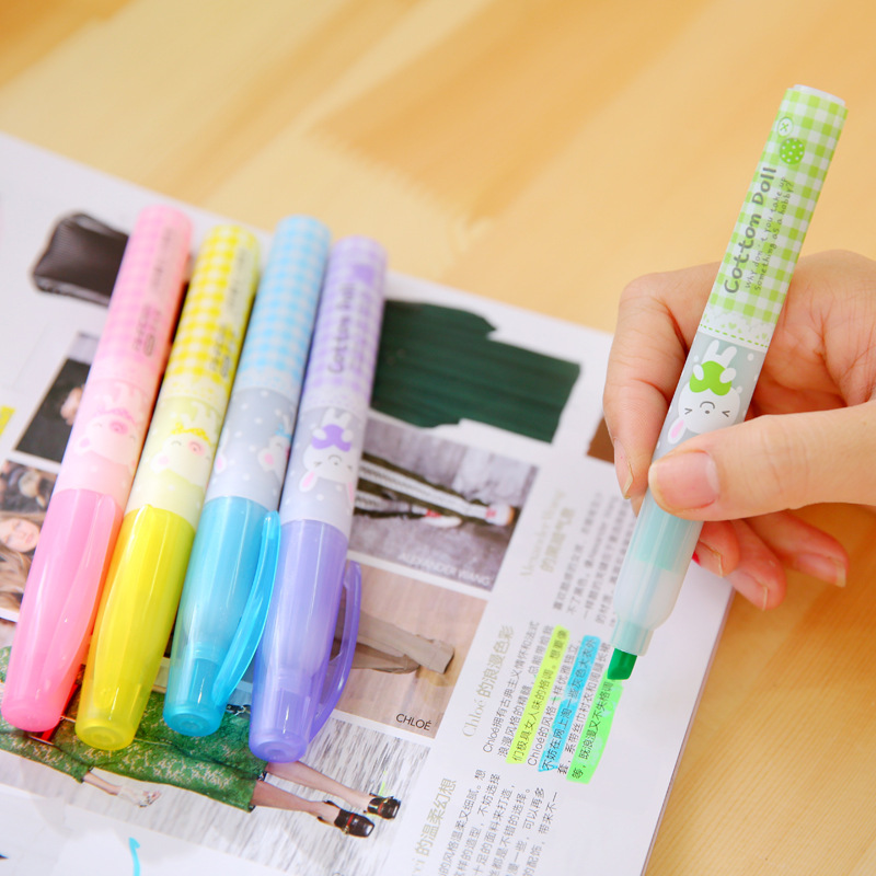 Hobby stationery Cute cartoon rabbit and bear fluorescent pen oblique head large capacity student exam marker pen 6252