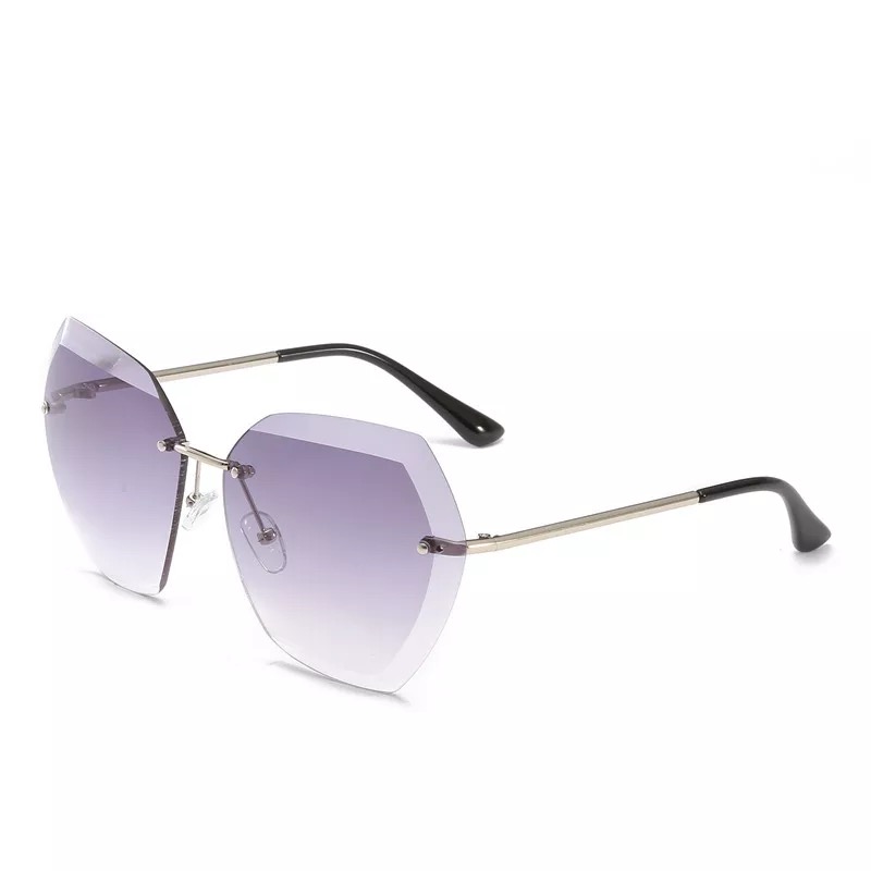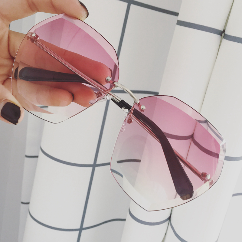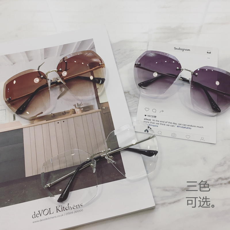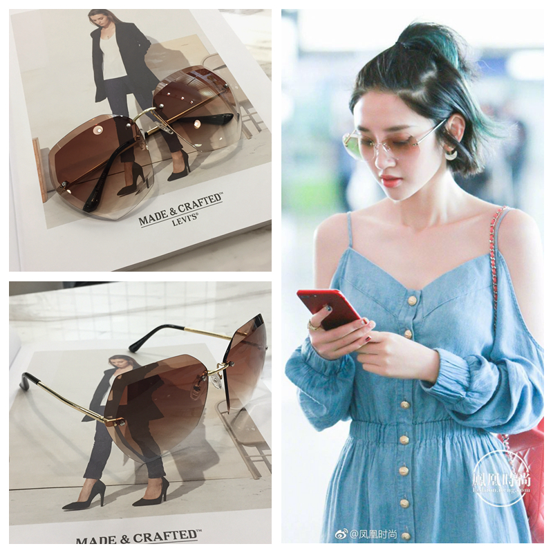Tang Yixin Tongan irregular polygonal cut edge lenses No frame metal sunglasses Tea color transparent sunglasses female