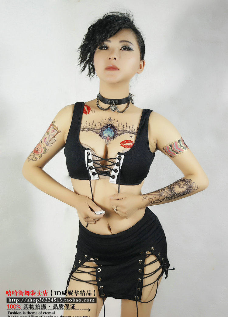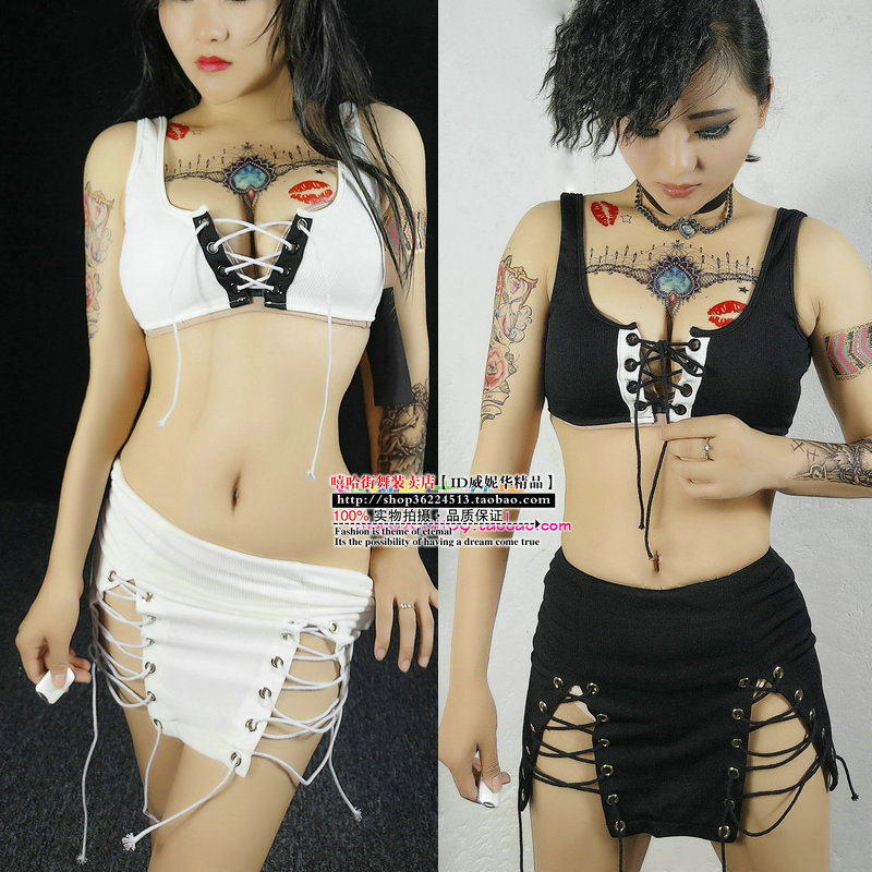 European and American dancer female sexy strappy navel vest female nightclub ds lead dancer low-cut gogo costume suit