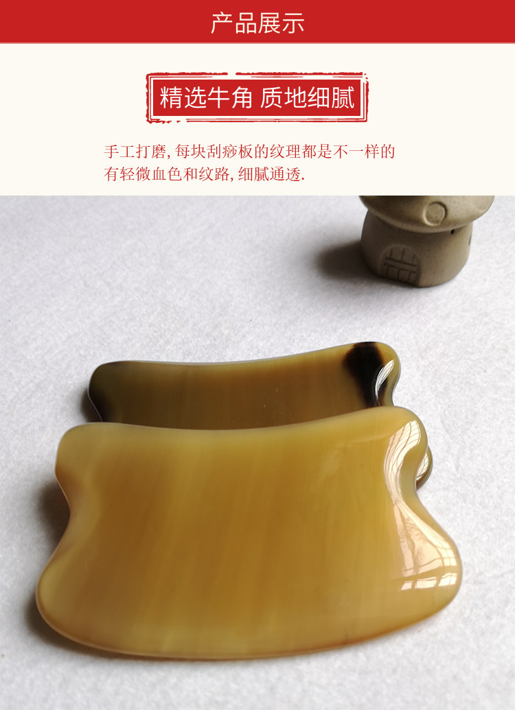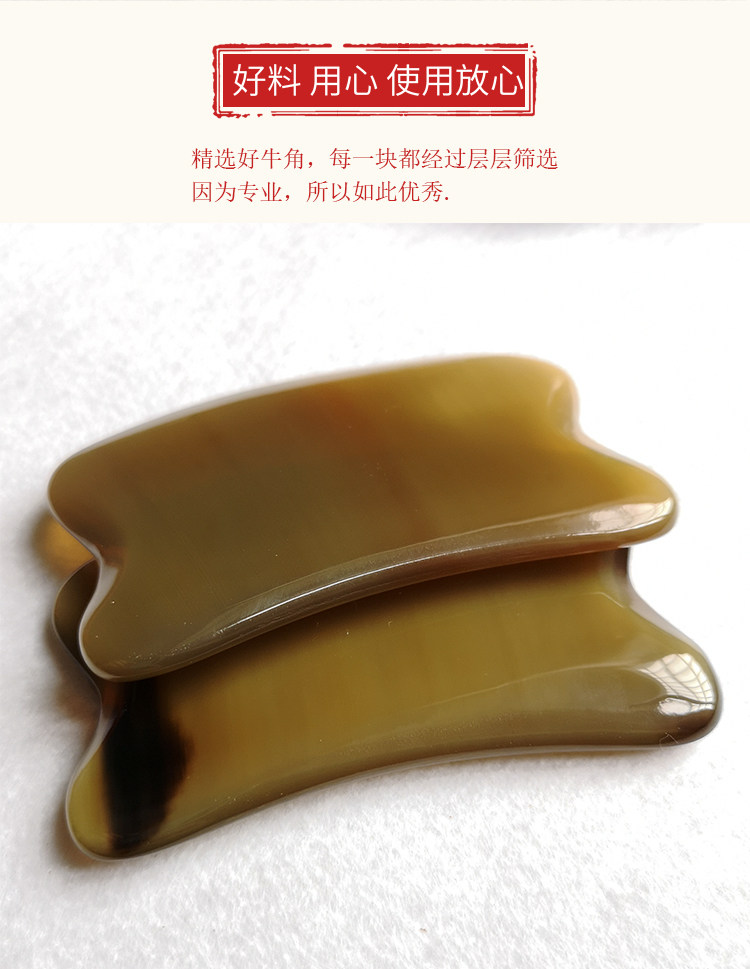 Thickened old white buffalo horn, good shave, two sides with scraping groove, square type, multi-functional universal scraping massage board