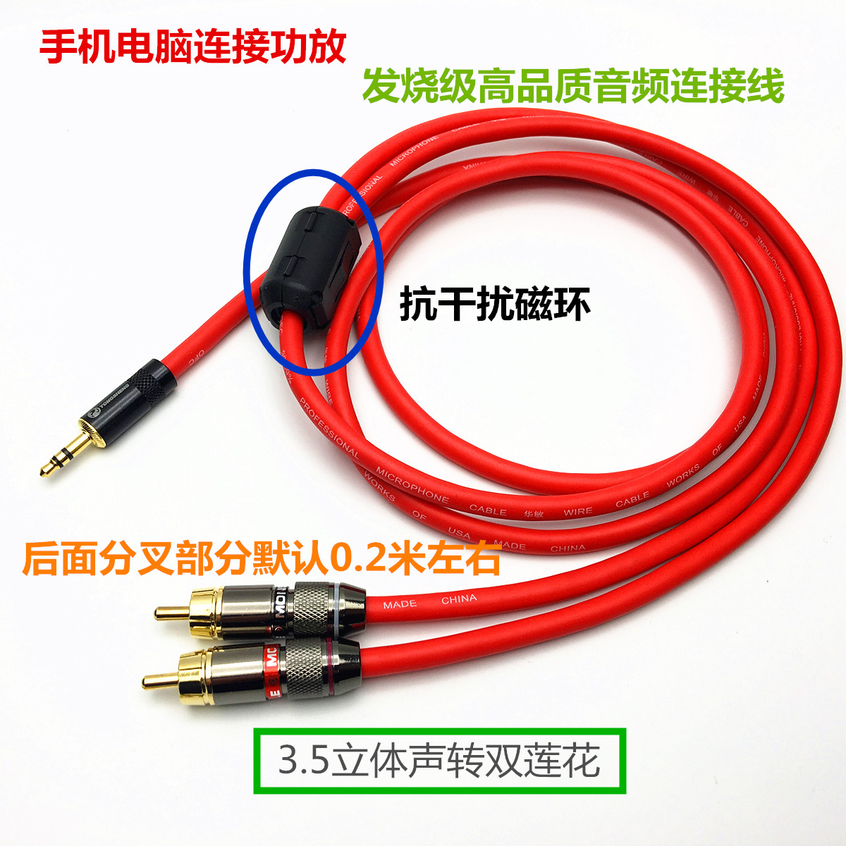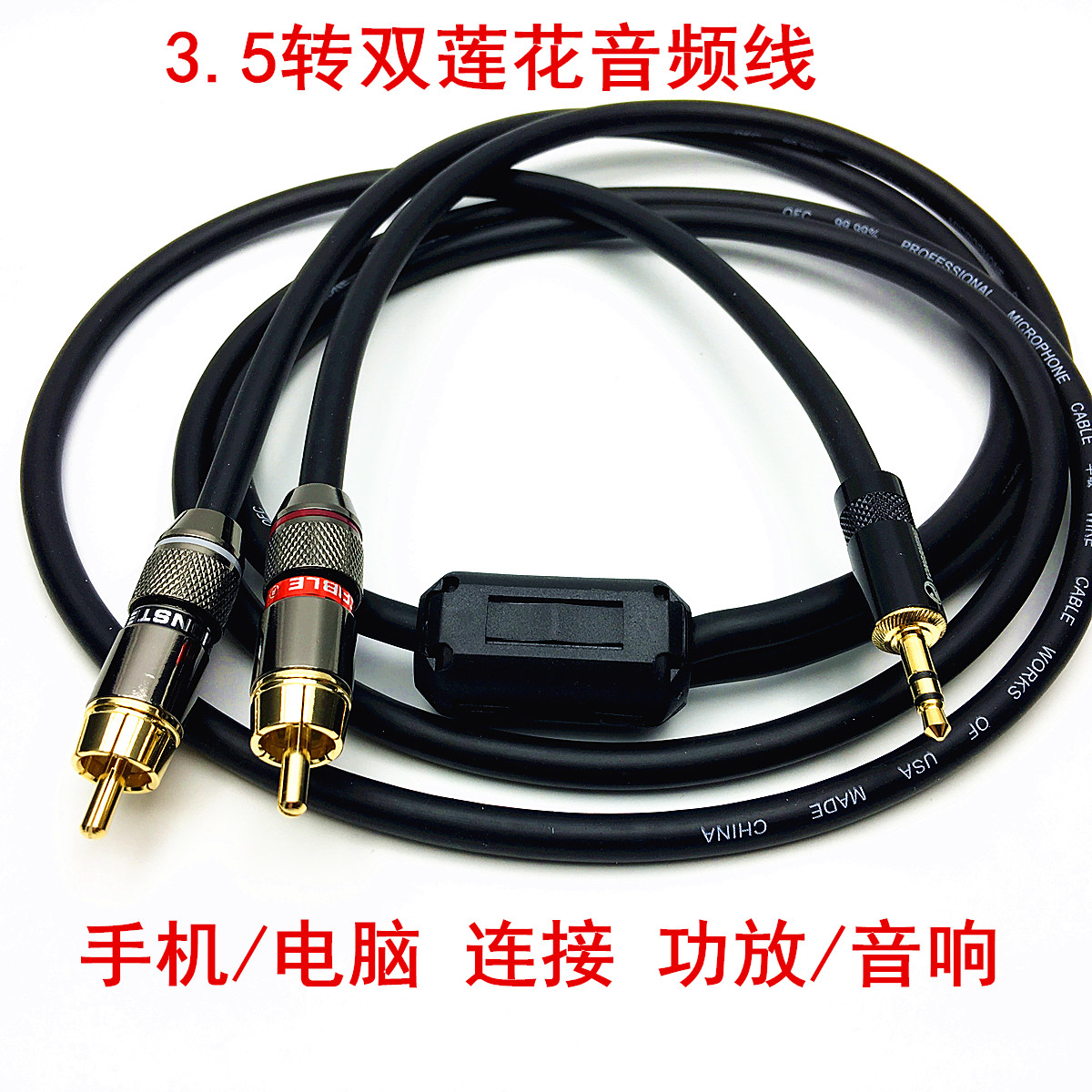 Mobile phone Computer stereo connection power amplifier Line 3 5mm turn RCA 10% 2 3 5 Go Double Lotus Audio AV Line