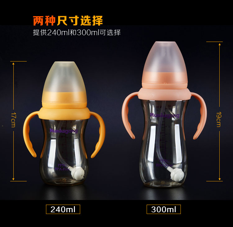 Baby big baby bottle psu psu resistant to fall wide caliber large capacity 300ml1-2-3-5 over year old children drink milk