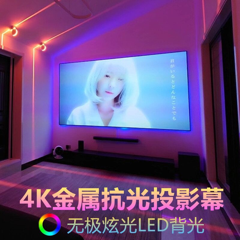 VISUALMR ultra-narrow frame 3D HD 4K metal anti-light curtain picture frame wall-mounted frame projection screen office home