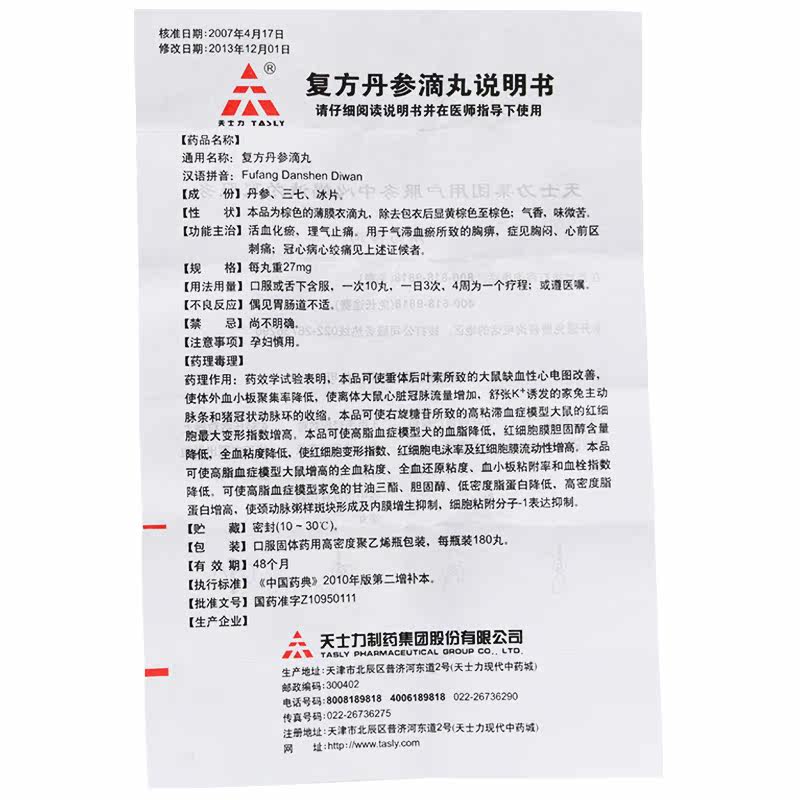 TASLY TASLY Compound Danshen Dropping Pills 27mg * 180 Pills * 1 Bottle Box of Promoting Blood Circulation, Removing Blood Stasis, Chest Stasis, Coronary Heart Disease, Angina Pectoris, Qi Stagnation and Blood Stasis