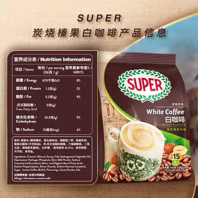 Malaysia imported super brand charcoal grilled hazelnut flavor three-in-one instant white coffee 600g bag