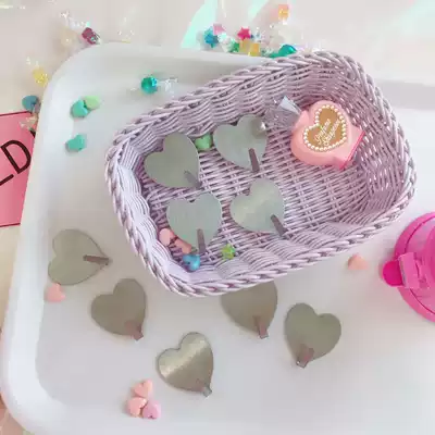 Korea INS minimalist love peach heart silver stainless steel adhesive hook nail-free hook chic room decorative hook