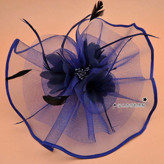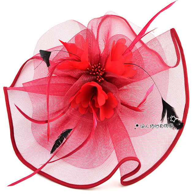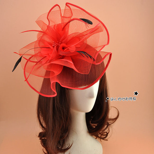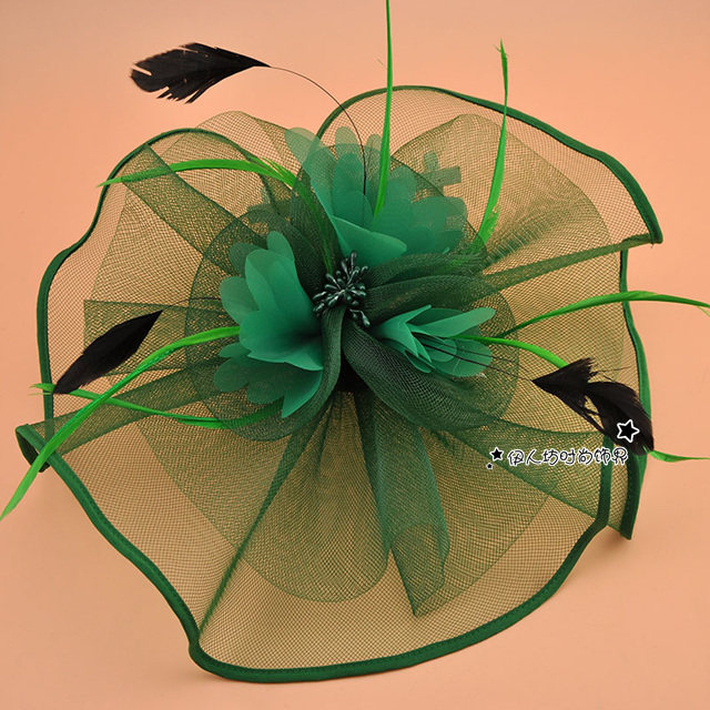 White bridal flower hair accessories stage performance feather hair clips exaggerated catwalk mesh shape top hat headdress