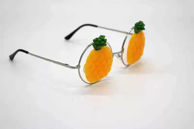 White strawberry light gray apple milky white cherry Off-white orange Dark gray kiwi Gray pineapple Silver lemon slice Black watermelon slice Glasses frame color Random hair