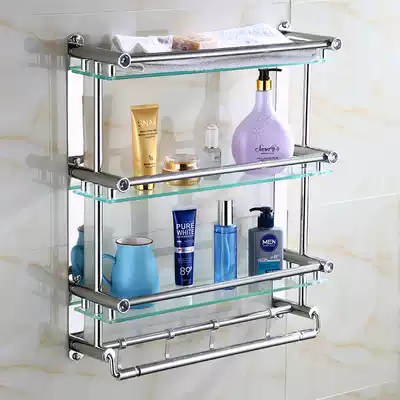 Bathroom stainless steel towel rack Powder room double glass bath towel rack 3-layer toilet bathroom 2-layer shelf pendant