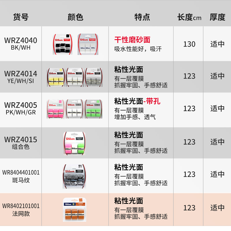Wilson Wilson dry matte hand glue Tennis racket Sweat-absorbing belt grip Non-slip hand glue Badminton racket handle leather