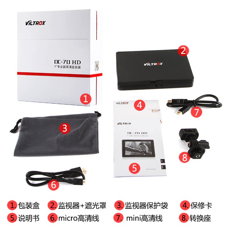 Vixos DC-70II SLR Monitor 7 inch Camera HMDI Video Photography HD Monitor 4K Rocker Arm