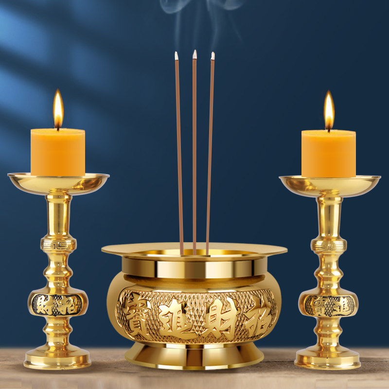 Copper candle holder Household candlestick pedestal pure copper fort god lamp wax table incense burner A pair of seat stoves for Buddha to insert candle ornaments