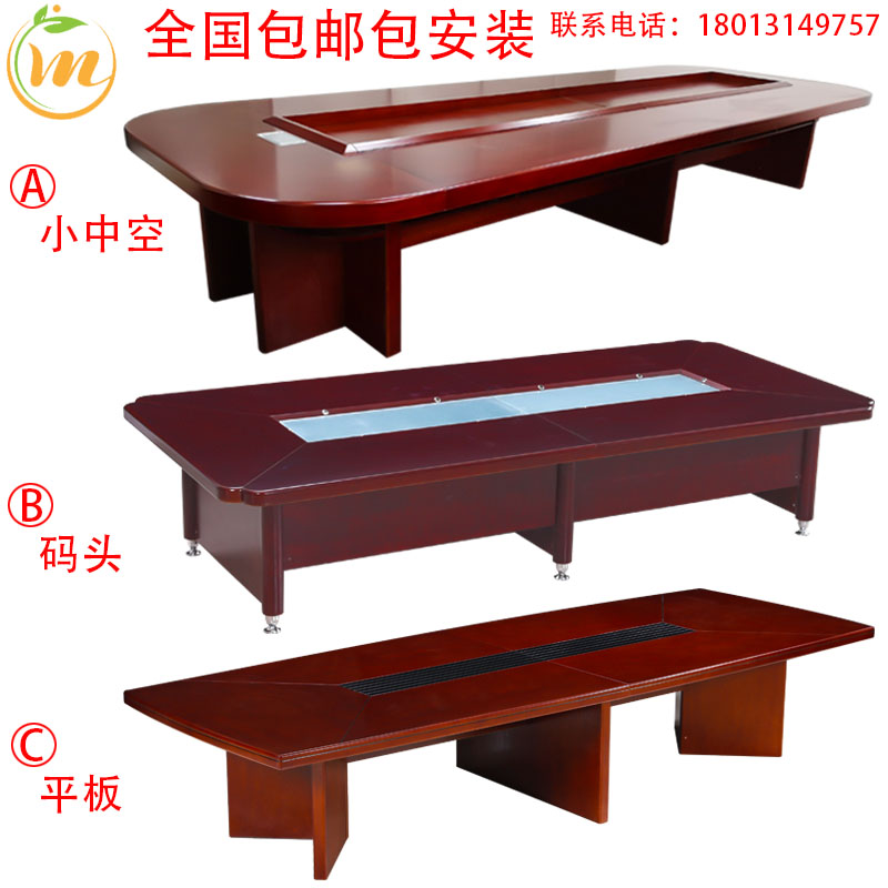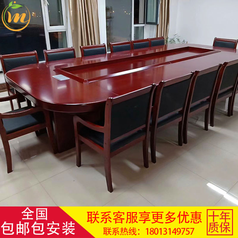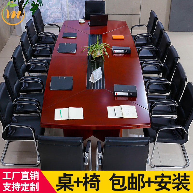 Large solid wood conference table long table and chair combination fashion modern desk walnut veneer paint conference table spot - Taobao