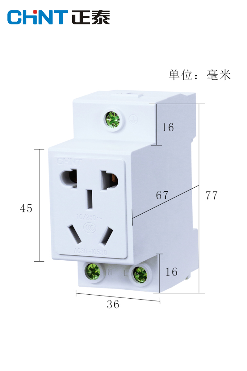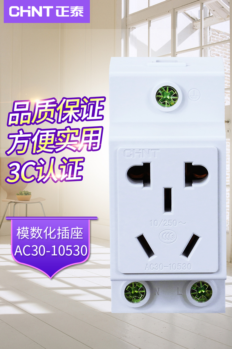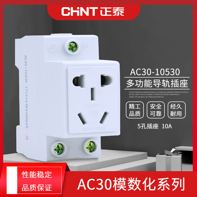 Zhengtai socket modular rail socket box power distribution AC30-10530 two-three plug 10A electric box socket five holes