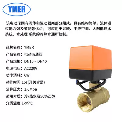 Three-line two-control electric two-way ball valve central air conditioning fan coil electric two-way valve AC220V electric ball valve