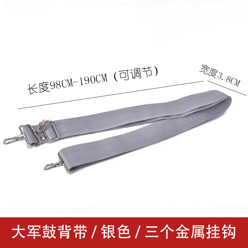 3.8CM wide silver drum strap (190cm adjustable) (rivet fixed, metal adjustment buckle)