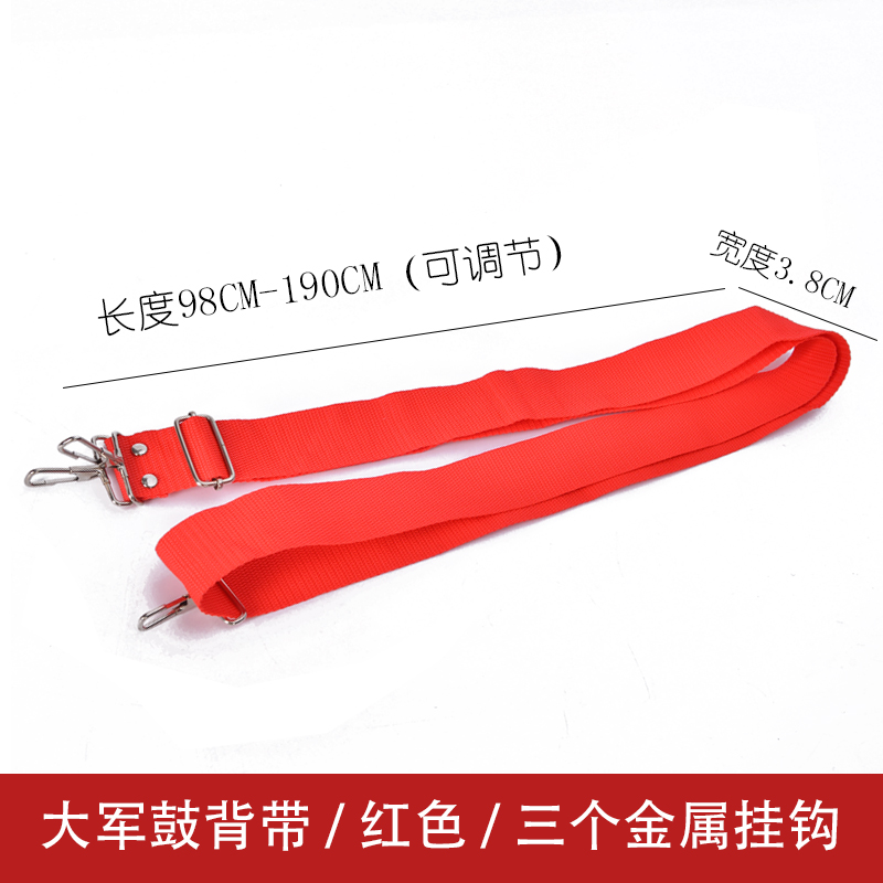 3.8CM wide red drum strap (190cm adjustable) rivet fixed, metal adjustment buckle