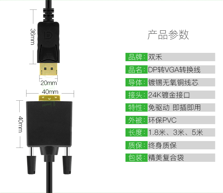 DP to VGA conversion cable Graphics card large DP to VGA interface display converter cable 1 8 meters 3 meters