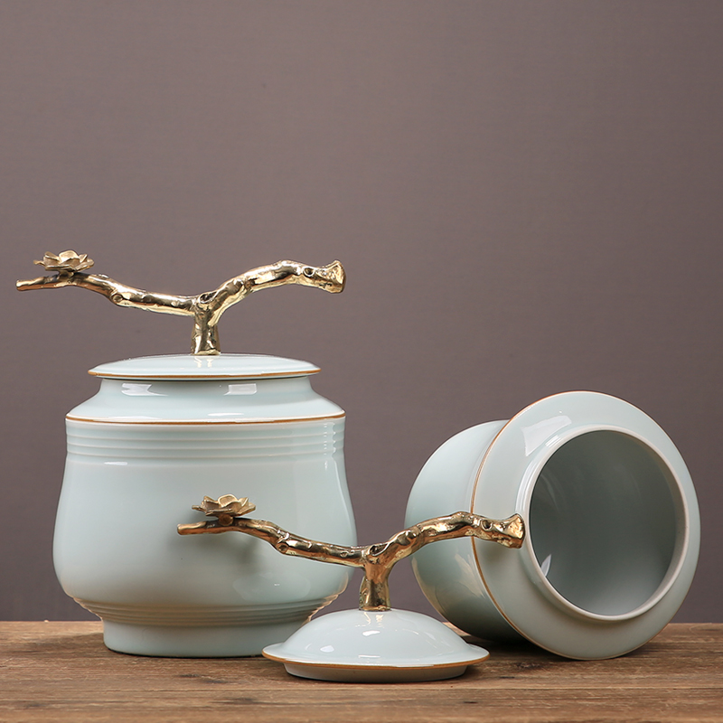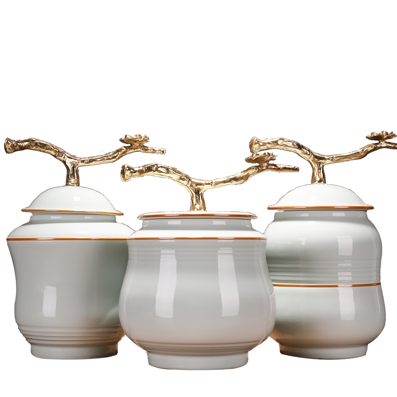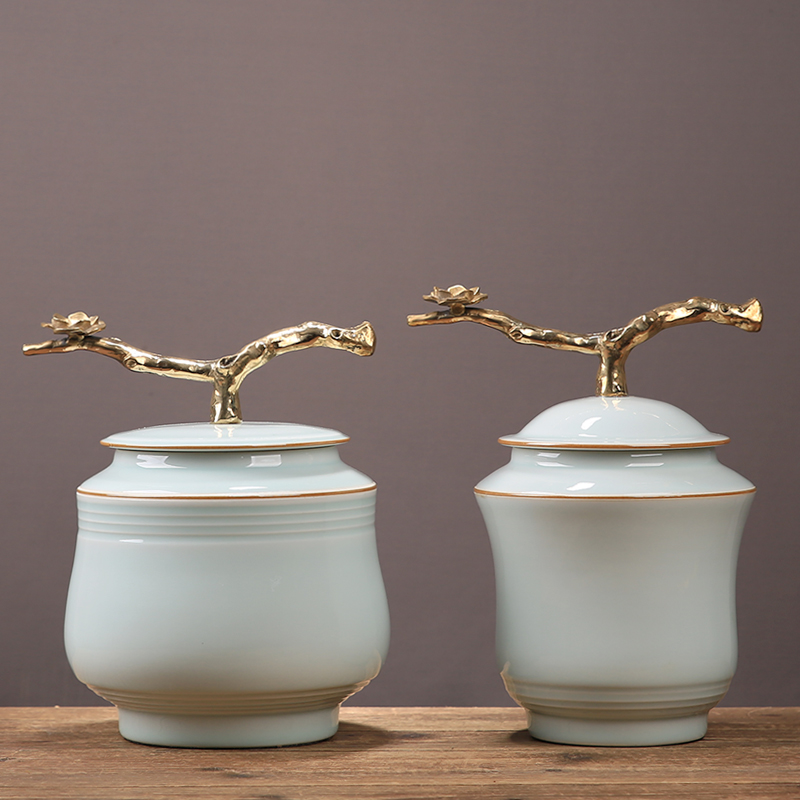 New Chinese ceramic decoration brass storage canned vase porch for soft sample room TV cabinet craftsGift decoration