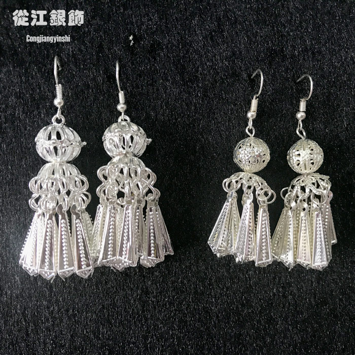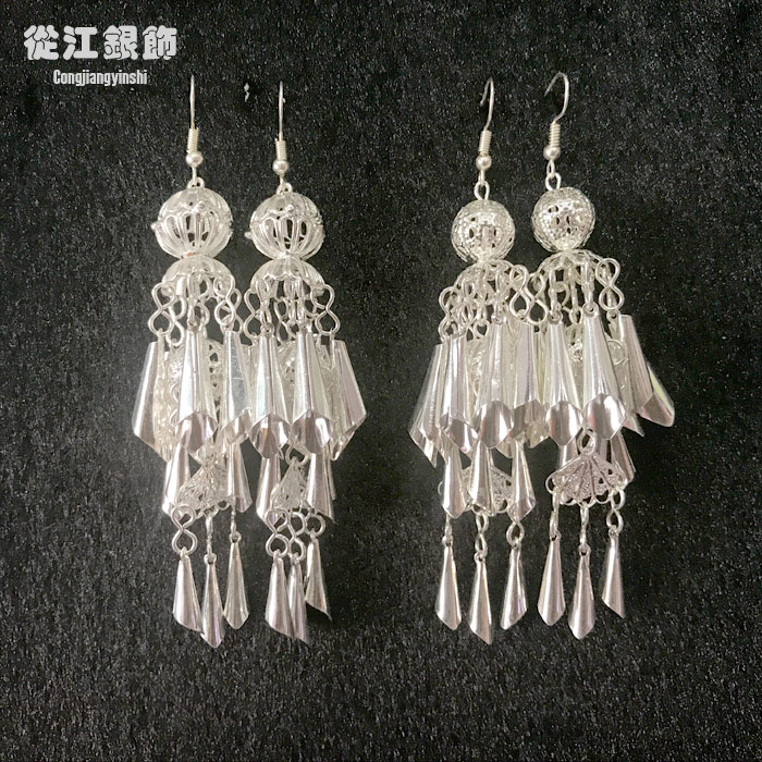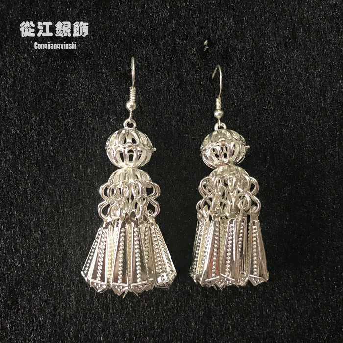Guizhou Miao Ying earrings of the aozhou Miao Ying ancient female wind heads exaggerated the atmosphere of the hundred and silver ear crash long personality girl
