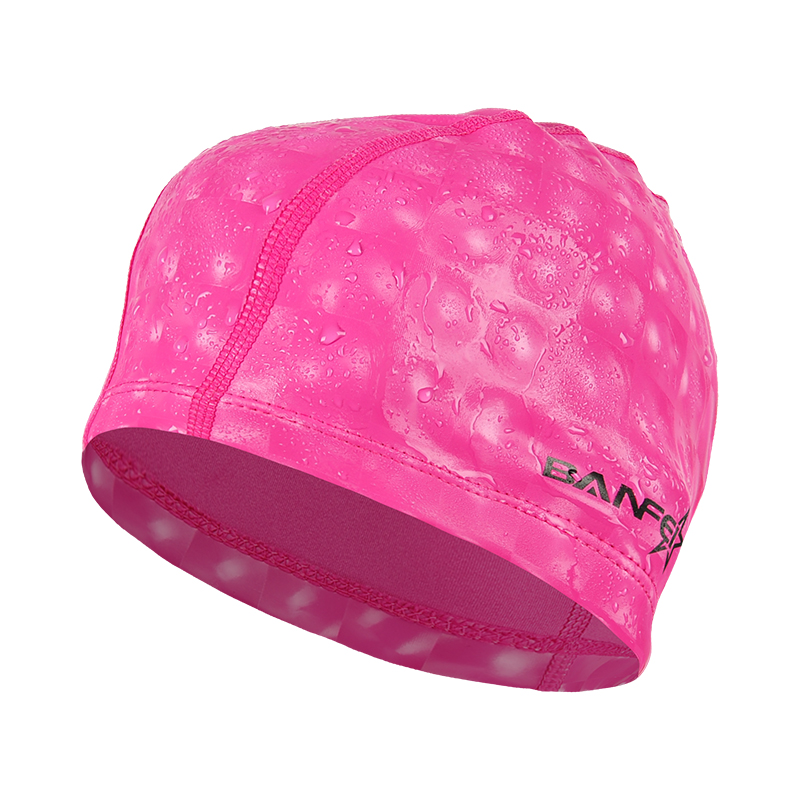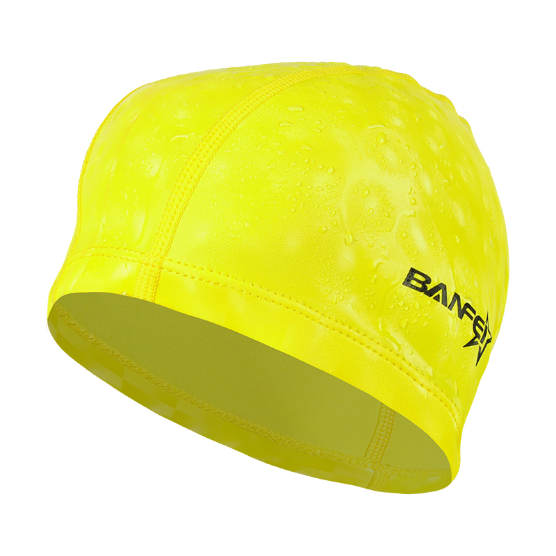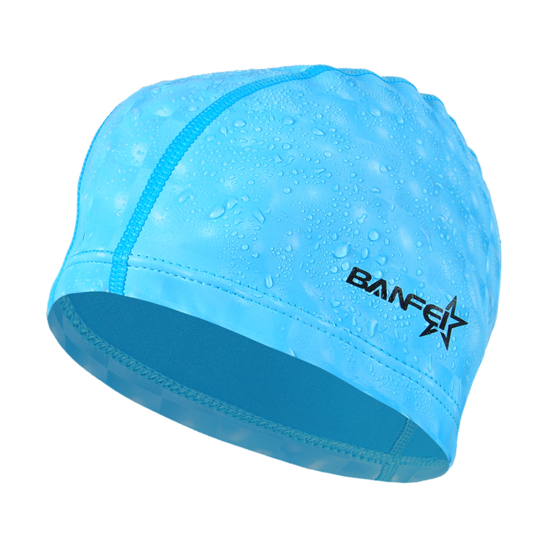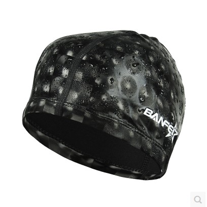 Banfi PU swim cap Water cubic plaid coated cloth swim cap Waterproof breathable long hair men's and women's hat swim without strangling head