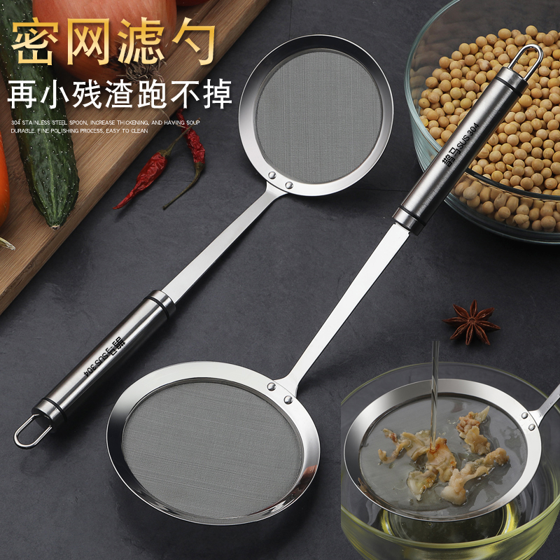 Thickened Filter Oil Spoon 304 Stainless Steel Leaking Spoon Filter Oil Net Spoon Kitchen Fried Scoop oil spoon Scoop Filter Screen