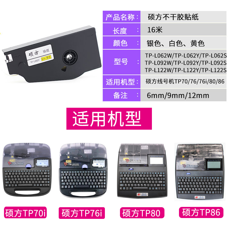 Suofang sticker TP70 76 80 86 line number machine label paper 6 9 12mm optional