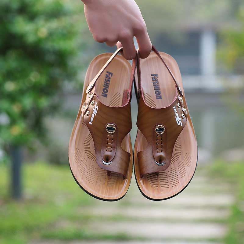 New slippers Men's cool Drag casual men sandals Summer Clip Toe Leather drag Han version Non-slip Men's sandal Shoemaker Sand Beach Shoes