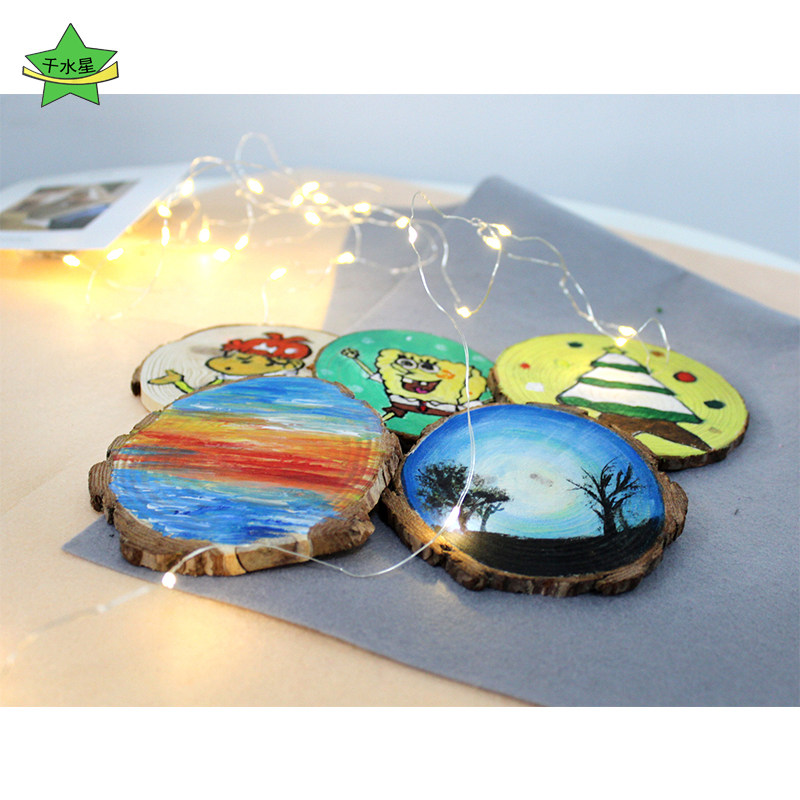 Pine wood chips diy creative hands-on model Handmade materials Hand-painted decorative art ring log wood chips small wood