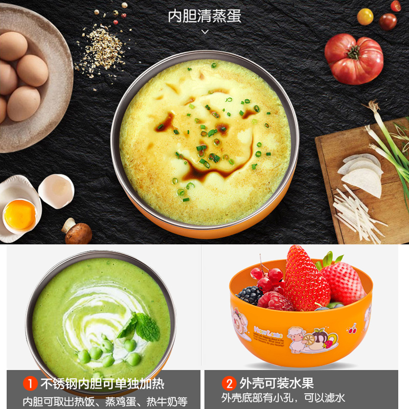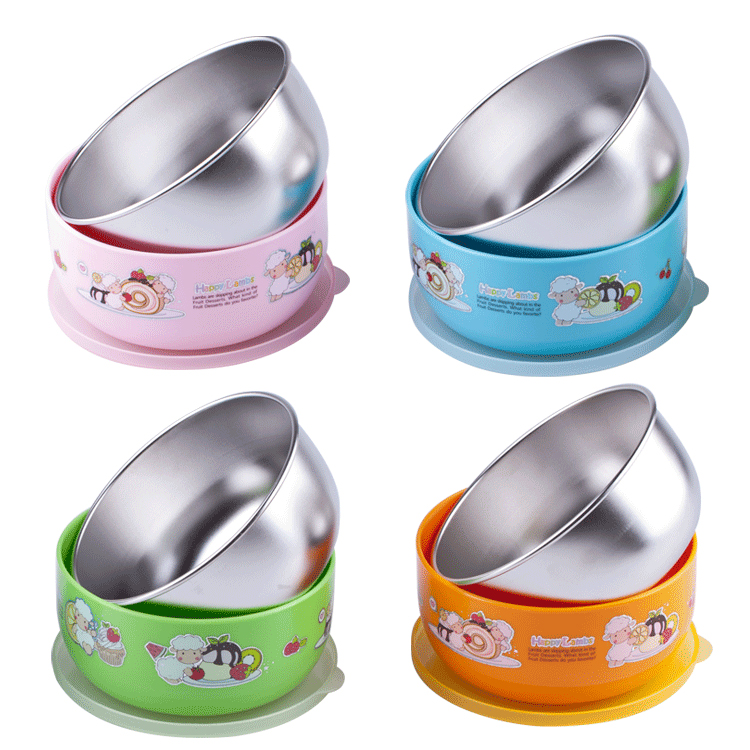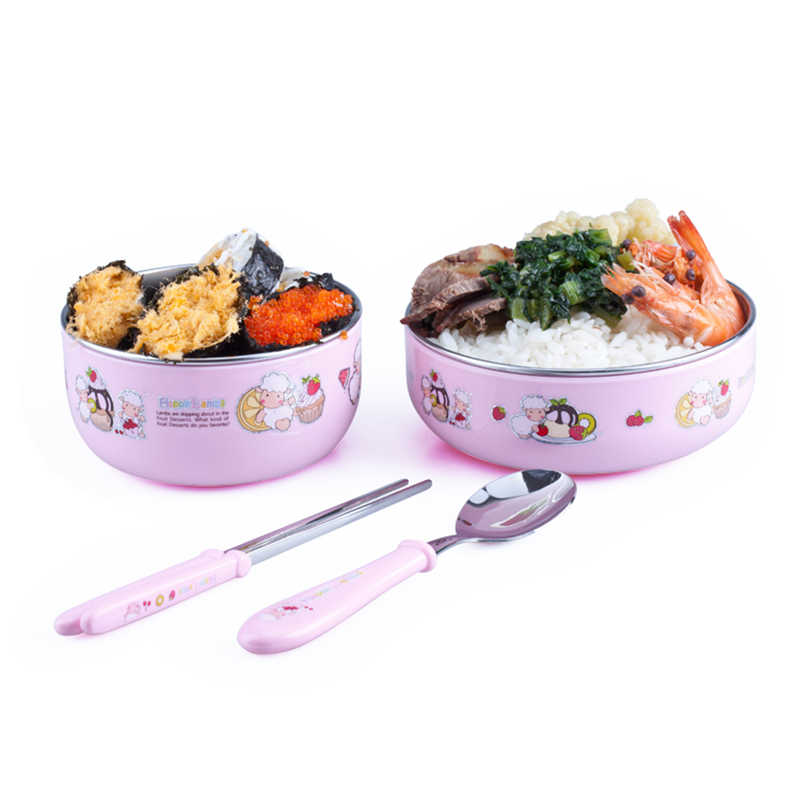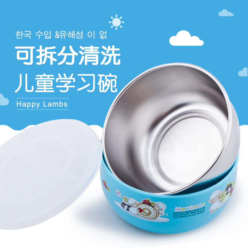 Korean children 304 stainless steel soup bowl with lid instant noodle bowl Student cartoon cute rice bowl insulation tableware