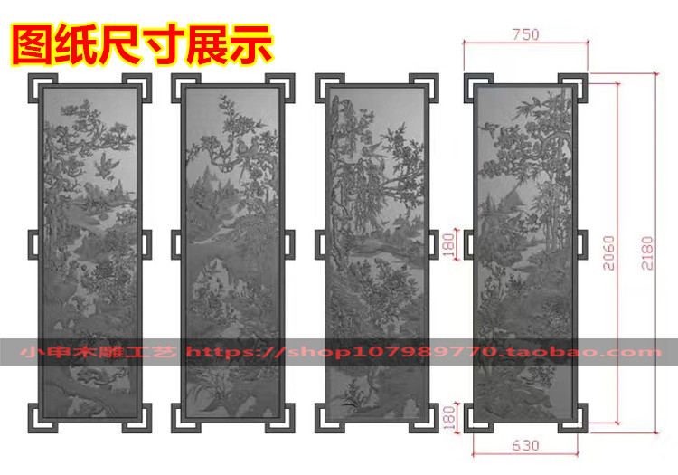 Dongyang wood carving landscape pendant living room hanging screen partition screen painting solid wood Meran bamboo chrysanthemum four-screen relief painting