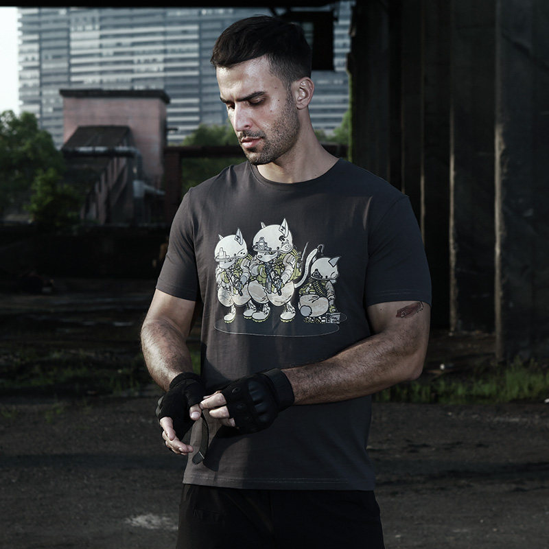 CQB Casual T-shirt Men Summer Printing T-shirt Short Outdoor Stretch Breakthrough Cultural Shirt Fan Clothing