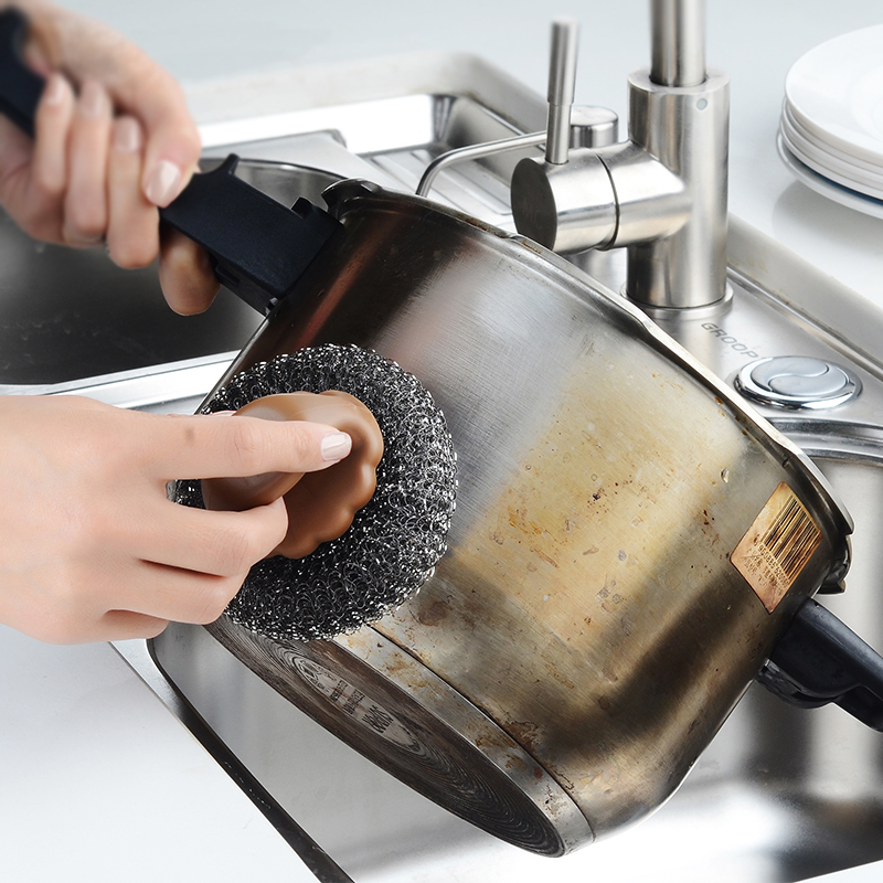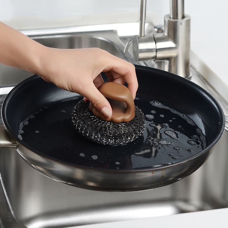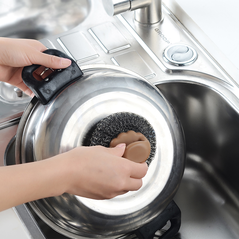 Japanese kitchen with pan brush with handle steel wire ball cleaning brush Home stainless steel wire brush to stains cleaning ball