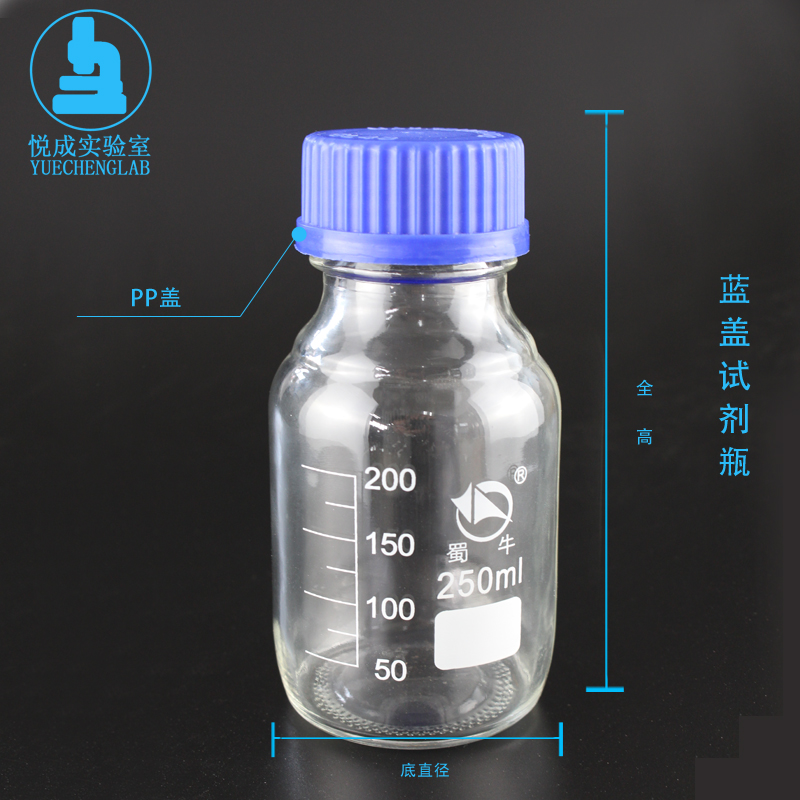 250ml wide mouth GL80 (blue cover high borosilicate) (non-Shu Niu)