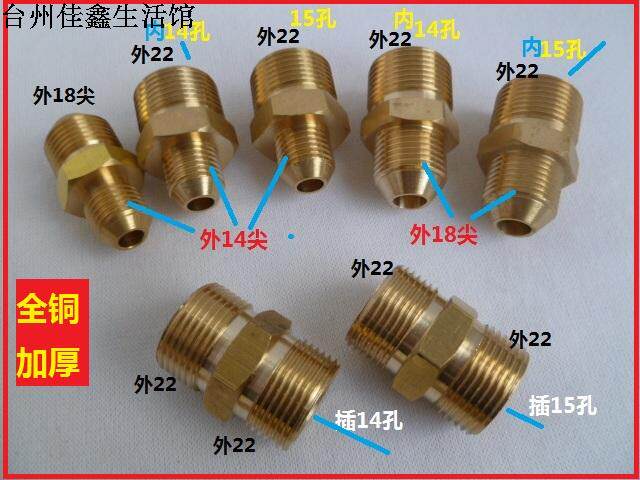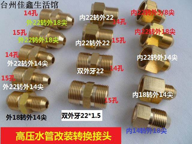 Copper high pressure washer water gun water pipe conversion connector 22 18 inner wire to outer wire 14 Car wash machine accessories