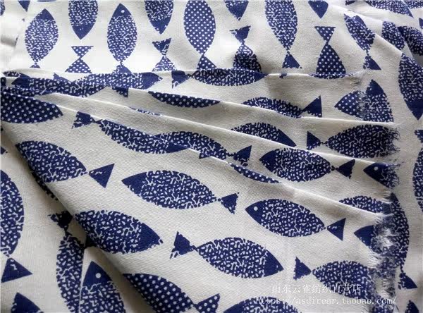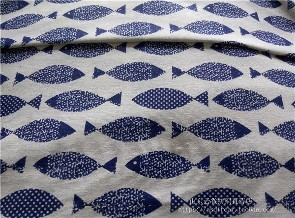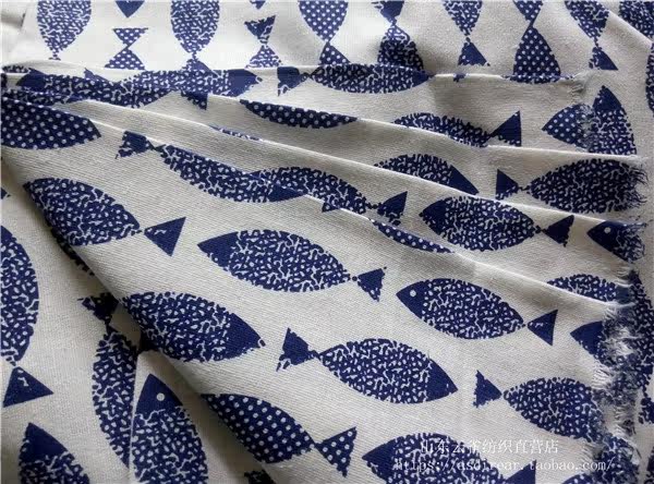 Mural fish foreign trade printing linen cotton linen fabric curtain sofa seat tablecloth cover decorative wallpaper cloth diy handmade