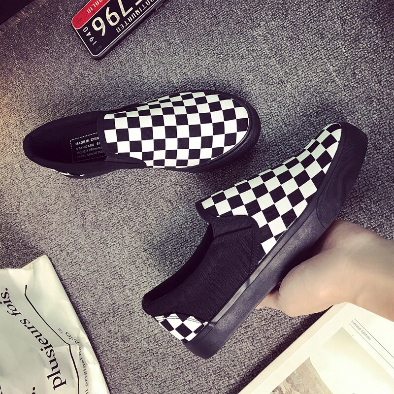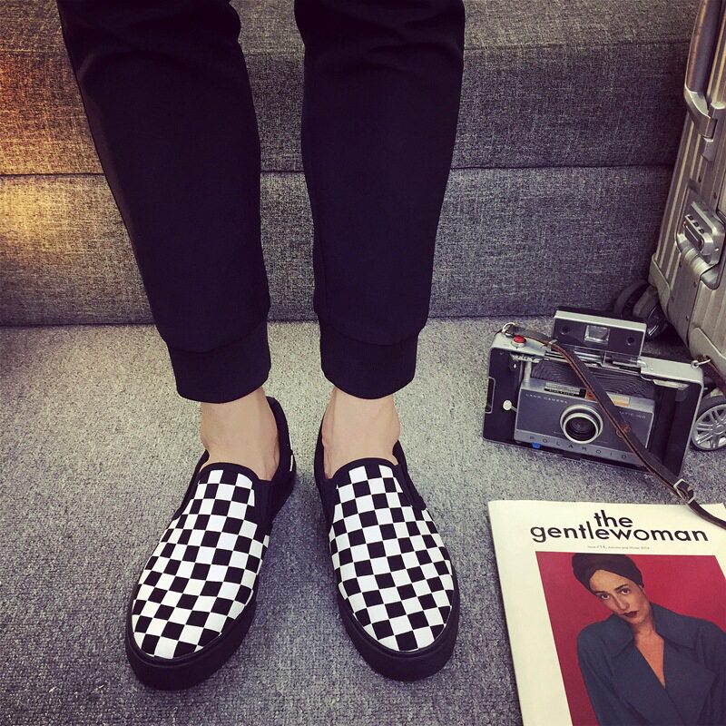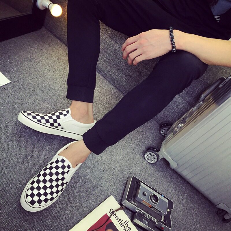 Korean Version Tide Men's Fashion Plaid Board Shoes Panes One Foot Pedal Classic Sails Shoes Students Casual Shoes Youth Sloth Shoes