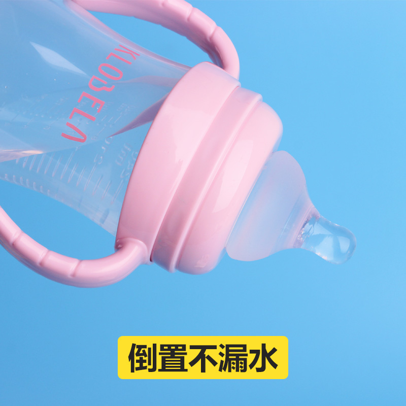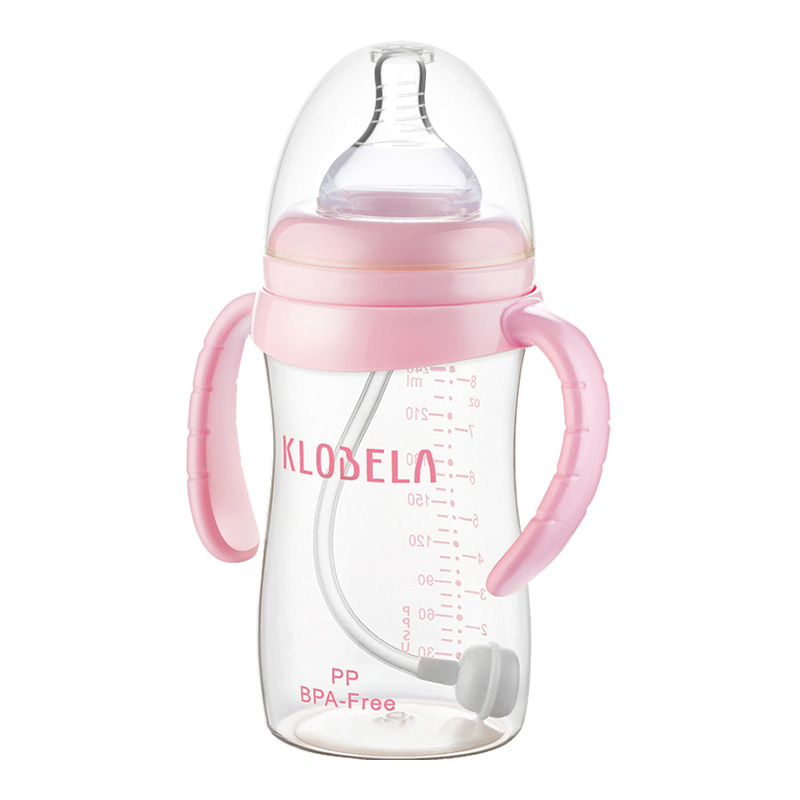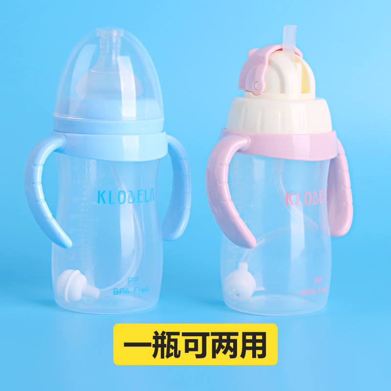 Baby PP plastic milk bottle polypropylene baby wide mouth with handle with straw to drink water and anti-flatulled gas newborn