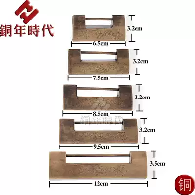 Copper lock through-opening padlock Old-fashioned ancient small key lock Antique pure copper key lock Chinese decorative ancient lock Retro bronze lock