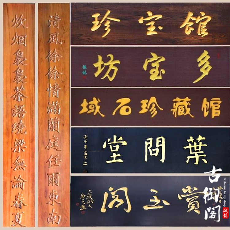 Dongyang wood carving antique solid wood plaque couplet custom door head plaque hanging plaque opening door shop signboard